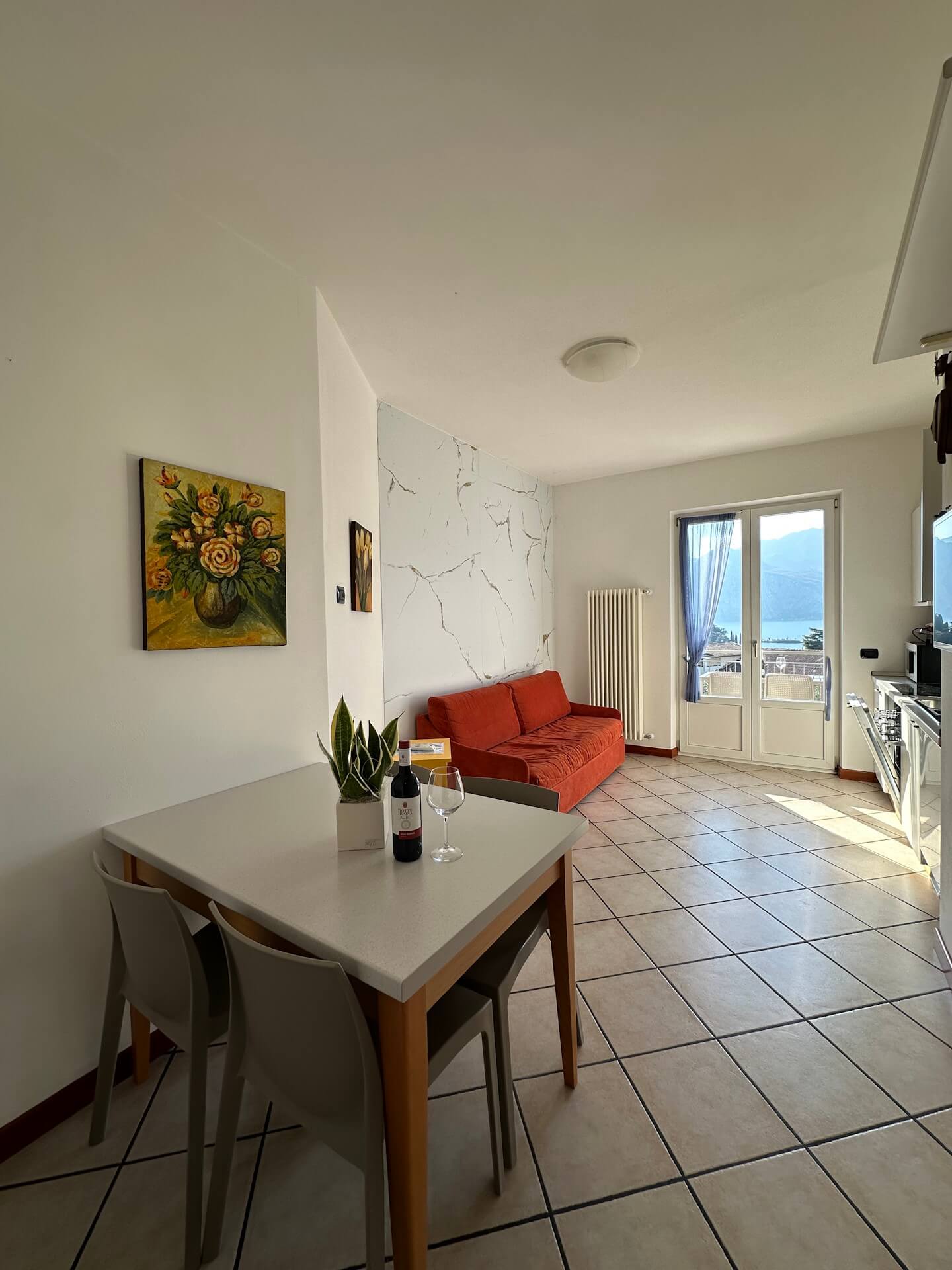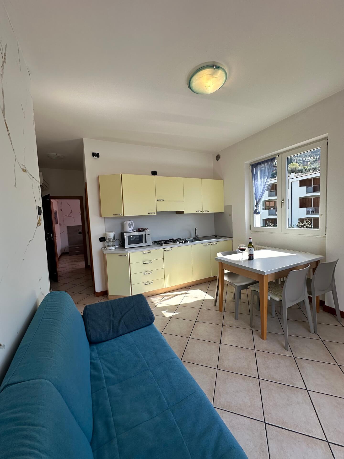 Two-room apartment composed of: double bedroom, living room with kitchen, bathroom with shower and two balconies overlooking the lake.
